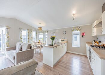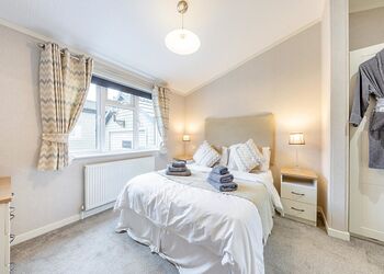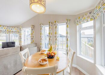 New in 2018. Modern and contemporary luxury lodge perfect for a relaxing escape. Two doubles, or one double and one twin - please check when booking, one with en suite shower. Luxurious Egyptian cotton bed linen. Bath with overhead shower. Spacious open plan lounge/kitchen/dining area with flatscreen TV. Doors leading to front decking area. Adjacent dedicated spa retreat area with plasma mirrored TV and indoor hot tub.Images are representative and may not be the specific accommodation assigned on booking.