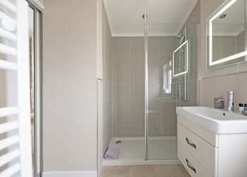 Renovated lodge with hot tub sunken into the new decking and outdoor rattan furniture. Open plan kitchen living/dining area, double bed with en suite shower. Twin bedroom, family bathroom with shower over the bath. Sofa bed in the lounge.Images are representative and may not be the specific accommodation assigned on booking.