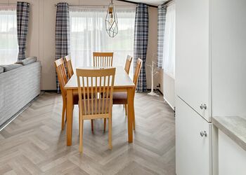 Our beautifully designed lodges have one double and one twin bedroom with light and inviting bedrooms which continue the stylish yet relaxed feel with soft, natural colours, and freestanding furniture. Stylish and contemporary, the spacious living areas immediately evoke a feeling of comfort and ease. Large windows accentuate the feeling of space and with its soft colour palette and sumptuous furnishings, you’ll be able to relax and unwind in true style. The contemporary kitchens provide plenty of practical cupboard space in addition to accommodating a full complement of integrated appliances. A particular feature of the kitchen is the wide work surface between the kitchen and dining area which creates a social area and a practical work space. The bathroom and en-suite have a lovely warm feel and both have shower facilities, perfect for having a soak and unwinding at the end of the day.Please note these lodges may not be suitable to those who are unsure on their legs as there are slopes and steps to access the lodges.