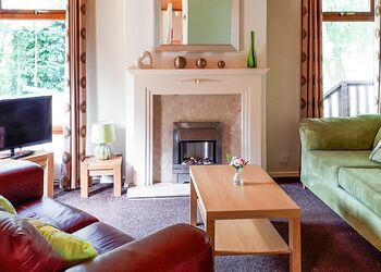 A quirky octagon shaped lodge with four large bedrooms which includes one large upstairs master with a king-size bed and en suite, two downstairs doubles and one twin room. The Octagon has its own parking spaces, you then enter through a large utility/boot room and into a large open-plan living/dining area. The kitchen, main bathroom and three of the bedrooms lead directly off this area. There is also a reading area on the mezzanine. Private garden with outdoor hot tub.