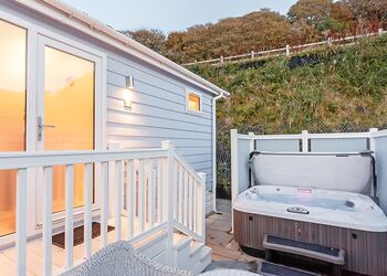 Boutique style beach hut ideal for romantic getaways for all occasions. Featuring master king-size with contemporary en suite shower. Spacious, bright, modern open-plan living space and sleek compact kitchen with microwave and stylish patio area with your own bubbling hot tub. Pets allowed in selected accommodation only.Images are representative and may not be the specific accommodation assigned on booking.