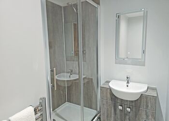 Compact pod to sleep two with one double bed. Separate bathroom with shower room and toilet. Built in kitchen fully equipped with microwave, hob, kettle and fridge. Smart TV.