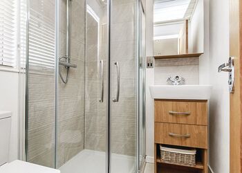 Contemporary and very spacious lodge with two king-size doubles, both with en suite shower, and two twin. Large modern bathroom with bath and overhead shower. State of the art open-plan living area featuring a 40" flatscreen HD TV, modern kitchen and dining area. Patio doors leading to spacious decking overlooking Newton Brook. Perfect for a break with family or friends.