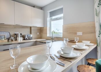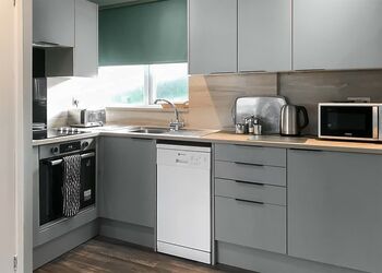Luxury three bedroom chalet. One double with en suite shower room and two twin bedrooms. Open-plan kitchen diner complete with fridge/freezer and dishwasher. 1 x additional bathroom with bath and overhead shower & 1 x shower room, decking with outdoor seating. Sorry no pets allowed.