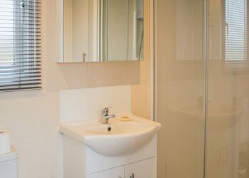A deluxe, luxury, lakeside lodge offering two king-size double bedrooms with walk-in wardrobes and en suite shower rooms. Modern, open-plan living/kitchen area with sliding French doors from both bedrooms and the lounge area leading to a large outdoor decking area with garden furniture to enjoy alfresco dining and a covered outdoor hot tub, hosting magnificent views of the landscaped gardens and lake. There is no direct parking at the lodge; guests are to park in the reserved parking space in the touring park and then walk a short distance to the lodge. No fishing access into Arthurs Pool. Fishing access directly into Foundry Pool from the decking area.