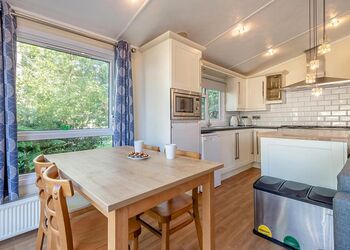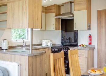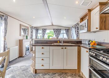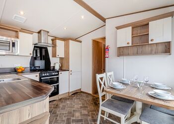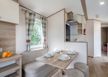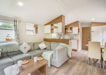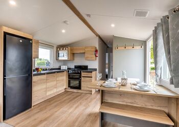Our largest range of lodge. With an expansive open plan living space, it’s perfect for a relaxing holiday. Features a fully equipped kitchen, heating & double glazing, a bathroom with shower, and beds fully made up on arrival. Plus, fresh towels and a complimentary hub pass! Images are representative and may not be the specific accommodation assigned on booking.