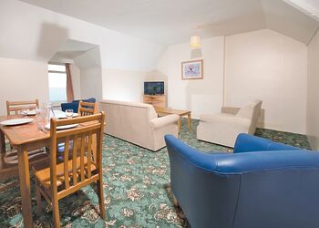 Introducing our luxurious two-storey apartment, designed for a spacious and comfortable stay. This exceptional accommodation features three double bedrooms, one twin bedroom, and a family room with one double bed and two singles, making it perfect for families or larger groups.On the ground floor, you’ll find a generous living room/diner complete with a TV and DVD player, providing an ideal space for relaxation and entertainment. The modern kitchen is fully equipped with a gas hob, electric oven, microwave, fridge freezer, and dishwasher, ensuring that meal preparation is a breeze. A convenient shower room and separate W.C. are also located on this level for added convenience.The first floor houses the remaining two double bedrooms and one twin bedroom, alongside a family bathroom, offering ample space for everyone. Guests can enjoy stunning sea views, enhancing your stay with a picturesque backdrop.All linens are provided, with beds made up for your arrival, ensuring a seamless start to your vacation. Central heating guarantees a cosy atmosphere throughout, and early check-in is available from 3 PM, allowing you to settle in and start enjoying your getaway right away. Experience the perfect blend of luxury and comfort in our stunning apartment!"Images are representative and may not be the specific accommodation assigned on booking.
