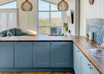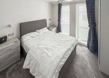 Arizona is a two bedroom cosy, contemporary wheelchair friendly lodge. Situated in our woodland area. It has an allocated parking space nearby and a slope with ramp access into the lodge. The two bedrooms have sliding doors for easy access and consist of; one double bedroom with a hoist above the bed (weight restriction), one twin bedroom with two small single beds, It has a fully equipped wet room with a shower and a seat. The kitchen units are low level, the perfect height for those using a wheelchair.