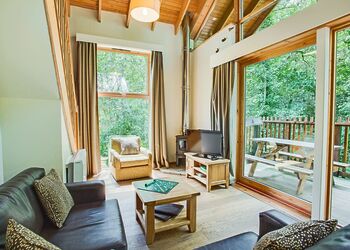 The highest quality premium lodge with master double with en suite bathroom and two twin. Downstairs shower. Log burning stove and gas barbecue. Bathrobes in master bedroom. Decking with outdoor hot tub. Views over the millpond.Images are representative and may not be the specific accommodation assigned on booking.