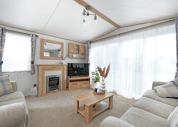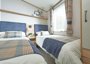 Studio Lodge 2 Bunkroom (Pets Welcome), making it perfect for relaxed self catering.The main sleeping area features a cosy double bed, while a separate bunkroom provides extra space for kids or additional guests. Large windows and French doors let natural light fill the space and open out onto your private outdoor seating area, ideal for morning coffee or evening relaxation.Pets are welcome so your furry companions can join in on the fun, and this lodge offers a comfortable base from which to explore the scenic surroundings or simply unwind together. Images are representative and may not be the specific accommodation assigned to your booking.