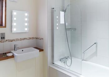 Luxurious and contemporary lodge furnished to the highest standard. One double with en suite shower and one twin. Bath with overhead shower. Log burning stove. Use of bathrobes in master bedroom. Decking with outdoor hot tub.Images are representative and may not be the specific accommodation assigned on booking.