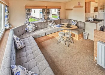 These self-catering first floor apartments are perfect for couples or solo travellers looking for a little luxury on their holiday. They are spacious and newly refurbished to a high standard, with a fully fitted kitchen; including a fridge with freezer compartment, dishwasher and wine cooler. The apartments have central heating and there are TVs in the living area and bedroom and a rainfall shower in the bathroom. These apartments have some of the best views of the coast on the whole park. Towels are included and no pets allowed. Each apartment has a private deck area with a hot tub and table and chairs.Images are representative and may not be the specific accommodation assigned on booking.