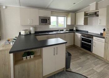 A spacious modern lodge with one master bedroom and one twin bedroom. The Atlas Wisteria Lodge has two bathrooms, a family bathroom with a bath and overhead shower and en suite shower room to the master bedroom. This modern lodge is situated on our fantastic new development. The Wisteria has an open-plan living and dining area with patio doors leading out to a verandah with garden furniture. No pets. Wi-Fi available.