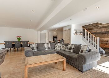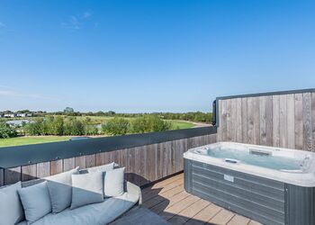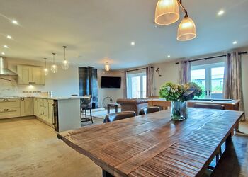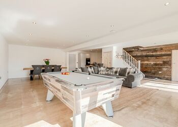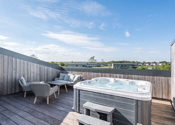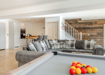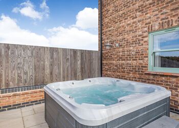 Stepping through the front door into the hallway area from the courtyard you will find a bedroom either side of you, one which one is a king bed with an en suite W.C. and walk in Shower and features a television in the room, and the other bedroom can be a super king or two singles made up to your requirements with a dressing table. Heading towards the main living area you will find a down stairs family bathroom featuring a walk in shower and bath. The main living area features an open plan lounge, dining room, kitchen, with a range of tasteful furnishings and high spec appliances, along with a pool table, and log burner. Step outside through French doors onto your private patio area to enjoy al fresco dining, or choose a relaxing soak in your very own bubbling outdoor hot tub.Heading up the stairs from the hallway you will find 3 Bedrooms. The luxurious master bedroom features a super king bed (which can also be changed to two singles), a Juliette balcony, dressing table, television and a en suite W.C. with walk in shower and twin sinks. The second bedroom features a king bed and en suite W.C. with walk in shower and a balcony. And the third bedroom can be a super king or two singles.