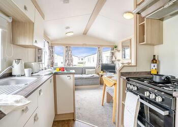 Our best in range caravan. Features a spacious interior with a premium finish for a memorable stay. Features a fully equipped kitchen, heating & double glazing, a bathroom with shower, and beds fully made up on arrival. Plus, a complimentary hub pass!Images are representative and may not be the specific accommodation assigned on booking.