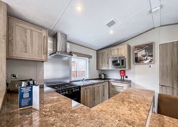 An up to date home, this is one of our newest on park and sleeps up to four in one double and one twin bedroom. It falls into our Luxury range featuring an open-plan living space and kitchen with ample seating and kitchen facilities including hob, fridge and microwave. Other features include bath and/or shower, linen and bath towels included with beds made up for your arrival, decking with patio furniture, double glazing, heating and an outdoor hot tub.Images are representative and may not be the specific accommodation assigned on booking.