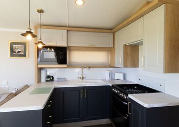 Brand new for 2023. For ingenious compact living, modern style and enviable luxury, discover the Pladda Pod. With its unique sleeping options; mezzanine sleeping with two single beds, and a pull-down double bed in the dining area, this pod is perfect for a family escape. open-plan living area with patio doors leading out to decking with outdoor hot tub.Images are representative and may not be the specific accommodation assigned on booking.