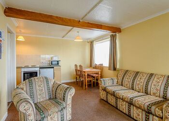 Comfortable first floor two bedroom apartment, bedroom one is a double and bedroom two has twin beds, with a further sofa bed in the living room. The kitchen and living room are separate and there is also a small balcony accessed by the living rom. The bathroom has a shower cubicle.Images are representative and may not be the specific accommodation assigned on booking.