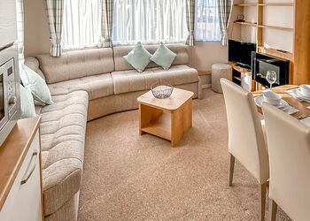 A spacious stone built four bedroomed house situated on the Orchards Holiday Park site, it provides a unique opportunity to get away and enjoy the facilities of a five star park with the privacy of a high quality, spacious home and garden. The house enjoys a private garden and patio area to one side with a large gas BBQ and boasting a sunny aspect. It has an excellent, fully fitted kitchen a large sunny lounge with patio doors leading to the garden, four good sized bedroom, two doubles with king size beds, one twin and a large family room with king size bed and 2 single beds, a modern bright shower room with separate toilet and downstairs bathroom. Orchard House can be booked for a week and sleeps 10 people. Towels and tea towels are provided.