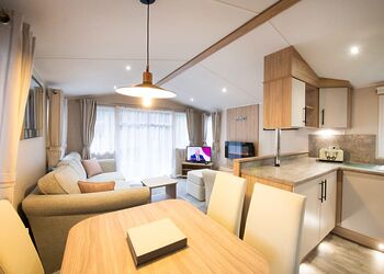 The best of the best. Our largest range of lodges, with top quality fixtures and fittings, a premium finish, and stylish decor. Features a fully equipped kitchen, heating & double glazing, a bathroom with shower, and beds fully made up on arrival. Plus, fresh towels and a complimentary hub pass! Images are representative and may not be the specific accommodation assigned on booking.