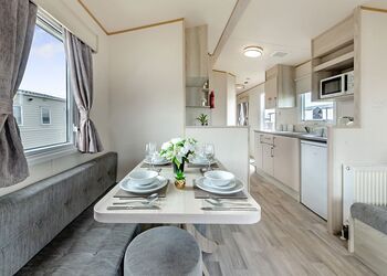 Our best in range caravan. Features a spacious interior with a premium finish for a memorable stay. Features a fully equipped kitchen, heating & double glazing, a bathroom with shower, and beds fully made up on arrival. Plus, a complimentary hub pass!Images are representative and may not be the specific accommodation assigned on booking.