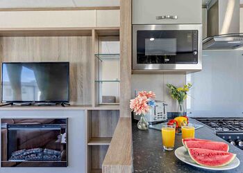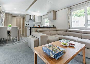Our largest range of lodge. With an expansive open plan living space, it’s perfect for a relaxing holiday. Features a fully equipped kitchen, heating & double glazing, a bathroom with shower, and beds fully made up on arrival. Plus, fresh towels and a complimentary hub pass! Images are representative and may not be the specific accommodation assigned on booking.