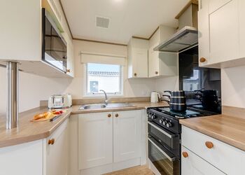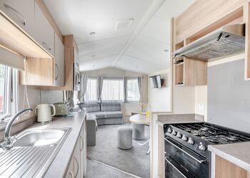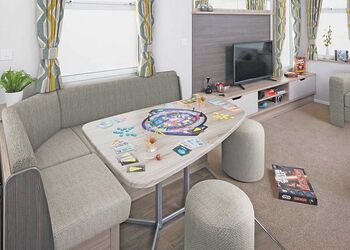 Our largest range of lodge. With an expansive open plan living space, it’s perfect for a relaxing holiday. Features a fully equipped kitchen, heating & double glazing, a bathroom with shower, and beds fully made up on arrival. Plus, fresh towels and a complimentary hub pass!Images are representative and may not be the specific accommodation assigned on booking.