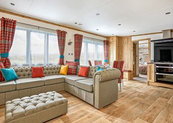 The Heartwood sleeps 2 in the main double bedroom, 3 in the twin bedroom and 2 on the pull-out sofa in the lounge. Please note, the Heartwood’s second bedroom has bunk beds (which are full size single beds.) The pull-out sofa in the lounge is a small double that can sleep 2 adults. Fully equipped kitchen with microwave. Double glazed and central heating.Images are representative and may not be the specific accommodation assigned on booking.