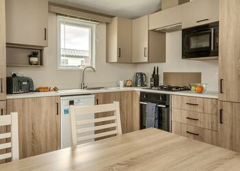 The Luxury Plus 3 Bedroom is a superb sleeps 8 holiday home with luxury features and is situated in a prime location on the park. With one double bedroom, two twin bedrooms and additional sleeping in the living area on the sofa bed. The living area has a flatscreen tv and a lovely fireplace making it perfect for those cosy nights in. The kitchen and dining area is Open-planned and has all the utilities required to make breakfast, lunch and dinner and is also perfectly designed so that all friends and family can still enjoy each other’s company whilst cooking as the dining table is within the kitchen area. There is a shower room and two W.C.’S. Outside you have your own decking area with furniture, perfect for a morning coffee in the sun or a glass of wine whilst looking at the stars at night. No Pets. Please note: The images used are for representational purposes and the style/layout may vary.Images are representative and may not be the specific accommodation assigned on booking.