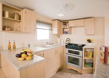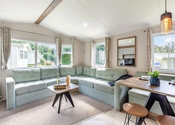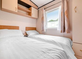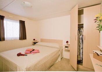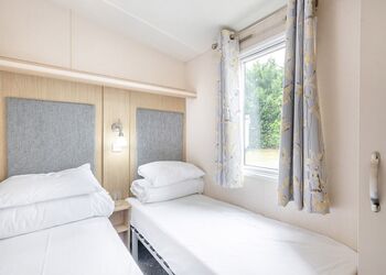 12-ft wide caravan with one double and one twin. Shower. Additional sleeping for two in the lounge area. Fridge/freezer. Double glazed and centrally heated. No pets.Images are representative and may not be the specific accommodation assigned on booking.