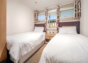 Introducing our Silver lodges, where you can experience modern and spacious accommodation designed for relaxation and comfort. Featuring double glazing and central heating, these lodges ensure year-round warmth and cosiness.Each lodge includes a master bedroom with an en suite bathroom, along with two additional twin bedrooms. The comfortable lounge is equipped with a TV and DVD player for your entertainment, making it the perfect space to unwind.The stylish fitted kitchen is fully equipped with a cooker, microwave, fridge freezer, and washing machine, providing all the conveniences of home. Step outside to enjoy outdoor leisure on your private veranda.Rest easy knowing that all linens are provided, with beds made up for your arrival. Check-in is available from 4 PM, setting the stage for a smooth and enjoyable stay. Embrace the perfect blend of comfort and modern living in our Silver lodges!Images are representative and may not be the specific accommodation assigned on booking.