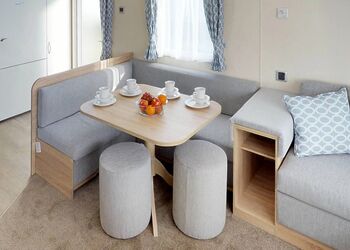 Simply, our best caravan accommodation. Finished to exceptionally high standards, our Platinum caravans include sumptuous furnishings and superior fixtures and fittings.This accommodation has one double bedroom and one twin bedroom.