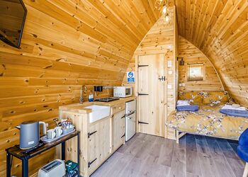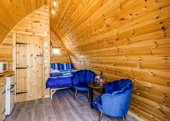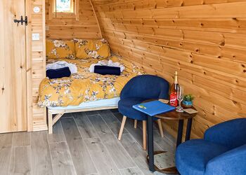 A stylish and spacious contemporary pod, thoughtfully designed for comfort and relaxation. Inside, you’ll find a cosy double bedroom and a modern shower room with toilet. The open-plan living, dining, and kitchen area is light and airy, featuring a widescreen TV. French doors open out to a private garden area, complete with outdoor furniture and a hot tub, ideal for unwinding under the stars. The perfect base for a romantic retreat! No pets.