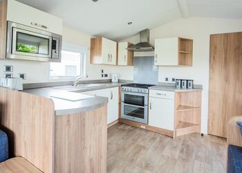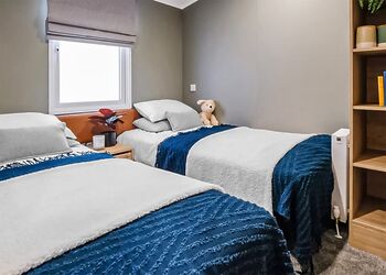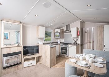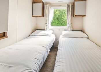 Introducing our mid-range, three-bedroom caravan, designed for comfort and convenience. It features two twin bedrooms and a master bedroom with an attached bathroom for added privacy. The open-plan kitchen and living area is fully equipped with a refrigerator, freezer, microwave, and smart TV, providing a cosy space to unwind and enjoy family time.For additional sleeping arrangements, the lounge includes a double sofa bed. The caravan ensures year-round comfort with double glazing and central heating. Other amenities include linens with beds made up for your arrival, a picnic bench for outdoor dining, a shower, and dedicated Wi-Fi for your convenience.Check-in priority is at 2:00 PM, allowing you to settle in and start your holiday without delay. This caravan is the perfect choice for families or groups looking for a comfortable getaway!Images are representative and may not be the specific accommodation assigned on booking.
