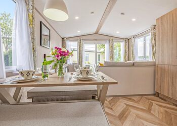 Unwind in style at Meadow View Lodge, a stylish and beautifully appointed luxury lodge offering breathtaking views across the Clwydian Hills. Perfect for couples, friends, or families, this lodge comfortably accommodates up to four guests in serene surroundings.Step inside to discover a modern open plan living/dining space offering lots of natural light complimented by the floor to ceiling patio doors. The living/dining features comfortable sofas, large Flatscreen Smart TV perfect for relaxing after a day of adventure. The fully equipped kitchen includes all the essentials for a comfortable stay, with a dishwasher, washing machine, microwave, and fridge/freezer. The master bedroom comes with a convenient en-suite shower/WC, and the twin bedroom features generously sized single beds and ample storage. As well as the ensuite the main bathroom includes a family shower providing convenience for family holidays.Step outside onto your private decking area, complete with high-quality seating, and soak in the panoramic countryside views in complete comfort.