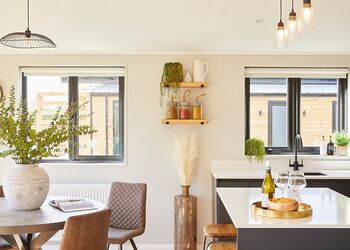 Welcome to the two-bedroom lodge, a haven designed for those seeking a delightful retreat. Whether you’re a family or a couple looking for a cosy getaway, this lodge offers a special blend of comfort and style.The bright and open living area is tastefully appointed with a contemporary design theme throughout. The fully-equipped kitchen is a culinary delight, featuring a full-size oven and gas hob, a fridge-freezer, and an island unit (or bar) with a breakfast area. The cosy lounge area is perfect for relaxation, featuring comfortable seating, a Smart TV for entertainment, Wi-Fi and a welcoming ambiance. A dining area completes this high-quality living space, making it ideal for intimate meals or game nights.The master bedroom is a sanctuary, thoughtfully furnished to provide a peaceful atmosphere. It features a comfortable king-size bed, en suite and Smart TV. The second bedroom is equally inviting, offering two single beds (or one super-king-sized bed) and its own Smart TV.The lodge seamlessly connects indoor and outdoor living through its large sliding doors. Outside, you’ll discover a private space designed for leisure and relaxation. Lounge on plush outdoor furniture, enjoy the gentle sway of a hanging chair, and dine alfresco on elegant outdoor furniture. For added ambiance, there’s a firepit for tranquil evenings under the stars.And, of course, your getaway wouldn’t be complete without your personal hot tub, where you can unwind in warm, soothing waters, surrounded by the tranquillity of nature. Let the stresses of everyday life melt away as you soak in the serenity of this enchanting setting.We understand that your furry friends are part of the family too, which is why we extend a warm welcome to them at The Barns. Most of our lodges are pet-friendly, and we’ve gone the extra mile by providing private dog wash areas, ensuring that your pets are as pampered as you are.Every detail has been carefully considered to ensure your experience is both memorable and rejuvenating. Electric vehicle charging (on request all lodges charges apply)Images are representative and may not be the specific accommodation assigned on booking.