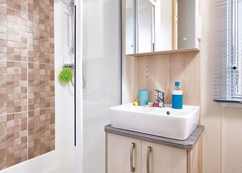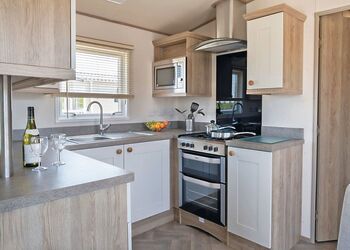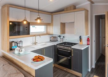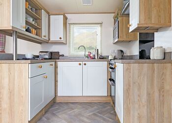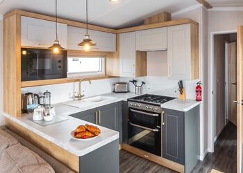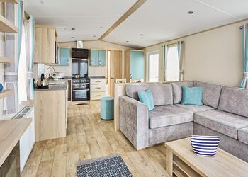 The Laidback Coastal static caravan is most suited to anyone looking to indulge in the easy-going Cornish lifestyle. Beach Chic, surf inspired interiors finished in neutral colours that, along with the Cornish sun, give you that brightness needed to lift your spirits and start each day energised and rested. Luxury mattresses in all the bedrooms will help you feel rested and ready for all the Cornish adventures you have planned!The Laidback Coastal style caravan is available in two or three beds with some being dog friendly to make sure the whole family including the four-legged members can enjoy a Cornish holiday.The master bedroom in each caravan offers a king-size bed with toilet, double wardrobe, and vanity area. The other bedrooms comprise of twin beds and there is a family shower room.Whilst cooking may not be high on your holiday priority list, if you are a passionate chef or enjoy cooking for your family this caravan offers a fully fitted kitchen with double oven, grill and hob, fridge freezer, microwave and all the crockery, cutlery and glasses you need for your stay. Enjoy a meal al fresco on the decking area as the sun sets or rises.In case of occasional lack of sun, we have got this covered as well. Make use of the living area with nice, family size, sumptuous sofa where you can snuggle up for a film on the flatscreen TV with Freeview or enjoy free individual Wi-Fi. There is plenty of heating as well as a wall fire to keep you cosy whatever the weather.We provide all your bed linen and duvets as well as a fully equipped kitchen so all the necessities you need to bring are the towels. No pets.Images are representative and may not be the specific accommodation assigned on booking.