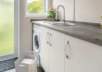 Brand new for 2025. Aurora lounge is comfortable and flexible. With freestanding sofas dark oak furniture lends a homely, traditional feel. The stylish blush pink and graphite colour scheme means there’s a touch of modernity, too. The kitchen in the Aurora is a perfect balance of practicality and style, with integrated fridge freezer, cooker and microwave and washer/dryerMove into the dining area and you’ll find a freestanding table with a dark oak top to match the rest of the decor, and six comfortable chairs. It’s right next to the big windows too, so you can enjoy the views and the sunshine. And of course, the whole area is open plan, with plenty of floor space.
