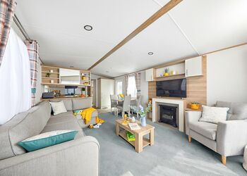 Stylish and spacious 12ft-wide caravan with one double and two twin. Towels included. Double glazed and centrally heated. No pets.Images are representative and may not be the specific accommodation assigned on booking.