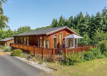 Luxurious and bespoke lodge, ideal for a family or a couple’s retreat. Two king-size double bedrooms, one with en suite shower, and one twin bedroom. Shared bathroom with shower over bath. Spacious open plan lounge/kitchen/dining area with French doors leading to verandah with outdoor hot tub and outdoor furniture enjoying a woodland setting with partial views of the lake. On-site parking. No pets. ...