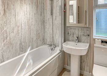 This lodge offers spacious accommodation with Super King Master with large en suite bathroom with bath, shower cubicle, wash basin & toilet. Second Super King room with ensuite shower room. One bunk bed room (suitable for children). Kitchen with microwave, fridge freezer, dishwasher and washing machine. Open plan kitchen and living area, doors leading to decking with furniture, bbq rack and hot tub.Images are representative and may not be the specific accommodation assigned on booking. ...
