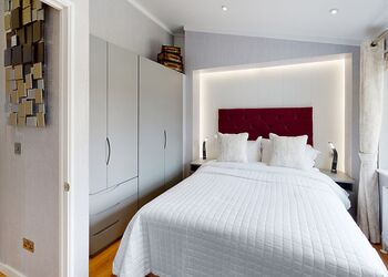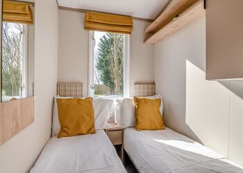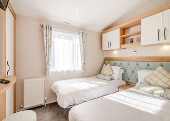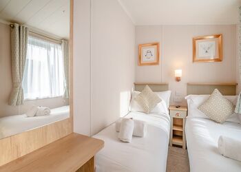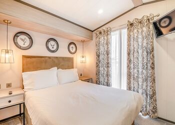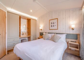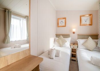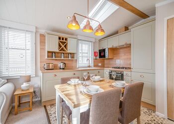 Deluxe Pet Friendly Lodge with master double with en suite shower, one twin and one single room. Family bathroom with bath and overhead shower. Kitchen including dishwasher and washing machine, Electric oven and hob. open-plan living and dining area. Doors leading to decking with outside furniture.Images are representative and may not be the specific accommodation assigned on booking. ...