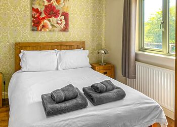 Superior and bespoke luxury lodge ideal for a couple or family escape. Two double bedrooms or the option for the second bedroom to be a twin room (zip and link by arrangement). One bedroom has a walk-in dressing room and en suite double shower. Shared bathroom including bath with shower. Spacious open plan lounge/kitchen/dining area with French doors leading to verandah with outdoor hot tub and outdoor furniture enjoying a woodland setting with partial views of the lake. On-site parking. No pets. ...