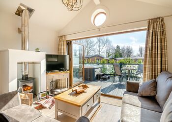 Indulge in the ultimate relaxation with the Drunken Duck collection, where a comfortable modern interior awaits, tailored for the perfect getaway. Its open-plan design seamlessly integrates a stylish kitchen, dining, and living area, featuring chic sofas, a contemporary electric stove fire, and a Smart TV for family entertainment. The well-equipped kitchen boasts essential appliances while the dining table serves as a focal point for gatherings and shared meals. Step outside through the patio doors onto a private decking area, where an outdoor hot tub and furniture beckon, creating the perfect setting for unwinding amidst serene surroundings. Featuring: Hot tubOutdoor FurnitureCoffee MachineAir FryerBathPlease note that the images show the lodges within this collection. You are welcome to request a specific lodge, please contact us to arrange this.Images are representative and may not be the specific accommodation assigned on booking. ...