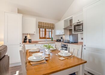 A stunning, pet-friendly lodge designed for those seeking a little extra space and indulgence, combining contemporary style with a calm, welcoming atmosphere. The impressive master bedroom offers a true retreat, featuring a spacious walk-in en suite shower and elegant finishes that create a sense of relaxed luxury. A comfortable twin bedroom provides a versatile space for family or friends, while the beautifully appointed family bathroom includes a full-sized bath - perfect for long soaks after a day of exploring.The heart of the lodge is its generous open-plan living, dining and kitchen area, flooded with natural light and thoughtfully equipped for effortless stays. The modern kitchen includes both a dishwasher and washing machine, making it ideal for longer, carefree breaks. Large doors open out onto the decking, where outdoor furniture sets the scene for laid-back meals and peaceful moments in the fresh air.To complete the experience, your own hot tub awaits; the perfect spot to unwind, stargaze and truly switch off, with four-legged companions welcome to join you throughout your stay.Please note: Images are representative and may not reflect the exact accommodation allocated on arrival. ...