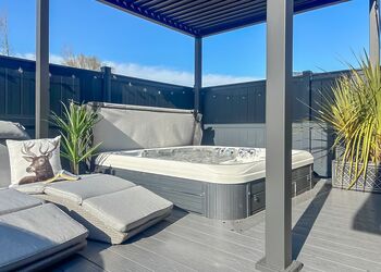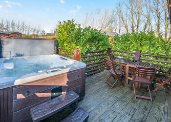 A stylish, pet-friendly deluxe lodge offering a comfortable and well-designed retreat, perfect for unwinding and spending quality time together. The master double bedroom complete with a flatscreen TV has a sleek en suite shower room for added comfort. A cheerful twin bedroom provides a welcoming space for family members or guests, and a separate family bathroom with overhead shower is handy if there are four guests.The heart of the lodge is the bright, open-plan living space, where a modern, well-equipped kitchen which includes a dishwasher. The kitchen flows seamlessly into the dining and lounge areas. It’s an inviting setting for leisurely breakfasts, shared meals and cosy evenings in. StStep through the doors onto your decking, furnished for outdoor dining and relaxed moments in the fresh air. To complete the experience, your own outdoor hot tub offers the ultimate place to soak, unwind and enjoy the peaceful surroundings. With pets welcome to stay for free, this lodge is the perfect choice for a carefree escape with every member of the family.Please note: Images are representative and may not reflect the exact accommodation allocated on arrival. ...