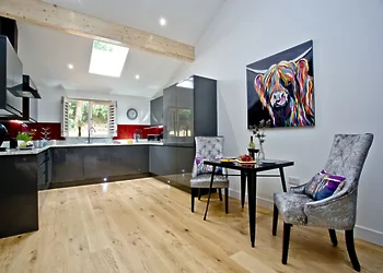 Accommodation options: Kingsford Lodge provides a luxurious stay for up to 4 guests with large walk-in showers and an outdoor hot tub, although it is not pet-friendly.