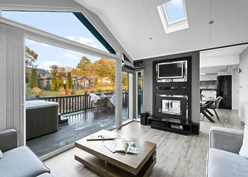 What can you do here? Anything onsite? Fishing enthusiasts can take advantage of the private lake year-round. The lodges are centrally heated with French doors leading to decking, offering stunning views and a hot tub for relaxation.